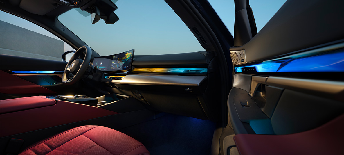 BMW 5系环抱式交互光带,可根据不同的My Modes 主题模式带来丰富多样的车内视觉风格,变幻不断的视觉效果与极具感染力的灯光氛围,随心打造专属出行体验。
