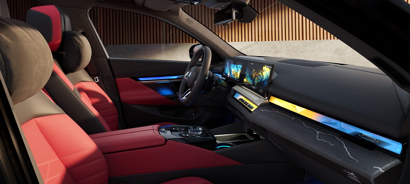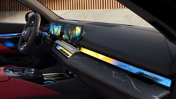 BMW 5系环抱式交互光带,可根据不同的My Modes 主题模式带来丰富多样的车内视觉风格,变幻不断的视觉效果与极具感染力的灯光氛围,随心打造专属出行体验。