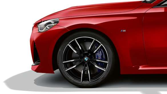 BMW M240i双门轿跑车制动系统采用带M标志的蓝色高性能卡钳,前轮装备四活塞固定卡钳,后轮上为单活塞浮动卡钳,辅以较大的制动盘面积,提供动感的驾驶表现,即使在湿滑路面行驶,依然不减车辆出色的制动性能。