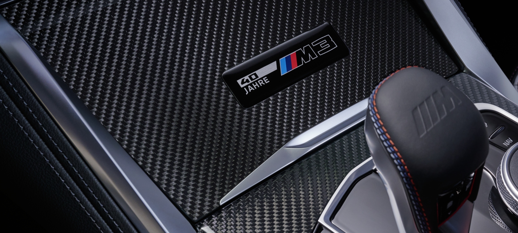 标配M碳纤维桶形座椅,由全Merino真皮细腻包裹,采用经典银石白与黑色配色,搭配限量版极地蓝色缝线;前排头枕上带有“40周年限量版”徽标,于细节处铭刻专属身份。落座其中,尽享随心所驭的操控乐趣。