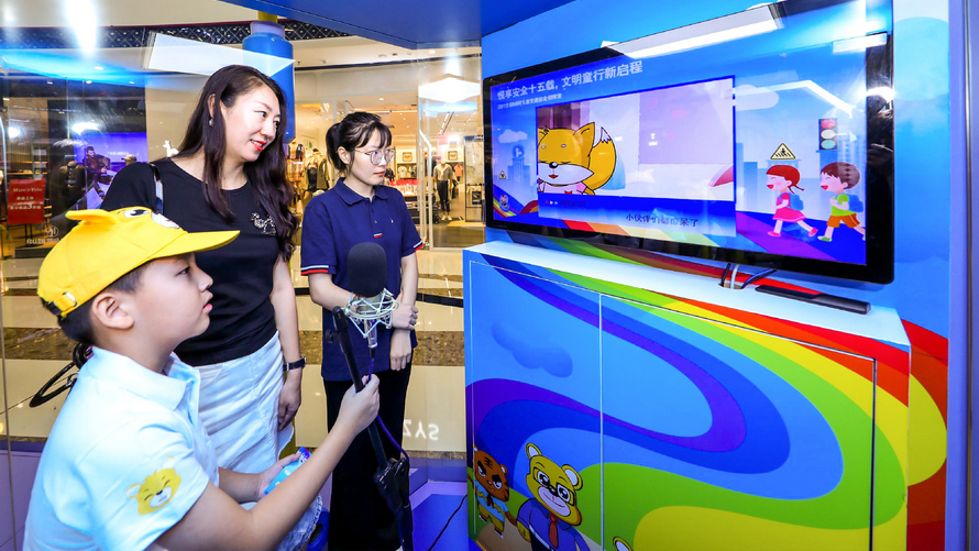 上午,快闪营在沈阳地标性建筑——华润万象城揭开神秘面纱,全新推出“安安趣配音”模块,孩子与家长们可以在配音角共同为交通安全动画片《安安的故事》进行配音,生动学习交通安全知识,并将同期开展线上配音活动,号召更多家庭参与,打造全民交通安全知识学习热潮。此外,快闪营还保留BMW儿童交通安全训练营的经典场景“安安大讲堂”、“安安驾校”等,通过场景式体验教学、VR技术等多样化教学手段,传递交通安全知识。