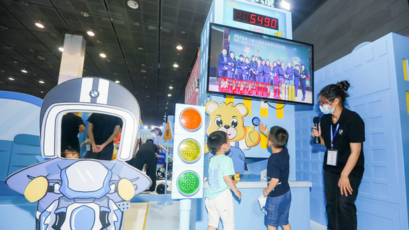上午,沈阳站的快闪营带着全方位的创新升级互动模块与家长和小朋友们如约见面。为了积极响应公安部交通管理局在全国部署的“一盔一带”安全守护行动,今年的快闪营模块特地增加摩托车骑行元素,例如在“安安驾校”中,小朋友们不仅可以驾驶迷你宝马电动车,还能戴上头盔驾驶迷你宝马摩托车,在体验驾驶乐趣的同时学习交通安全知识。同时,快闪营经典的“宝马好司机”模块也改版为“宝马好司机、宝马好骑士”互动拍照区。而小朋友们还可以在全新推出的“安安爱心大使”模块通过触屏互动获得专属漫画海报,共同助力“一盔一带”安全守护行动。此外,现场新增加的“盲盒抽奖”环节也受到了孩子们与家长的热烈追捧,现场小朋友在家长的陪同下拿出手机扫描二维码关注“宝马君”微信公众账号,参与线上互动赢取“神秘”礼物。